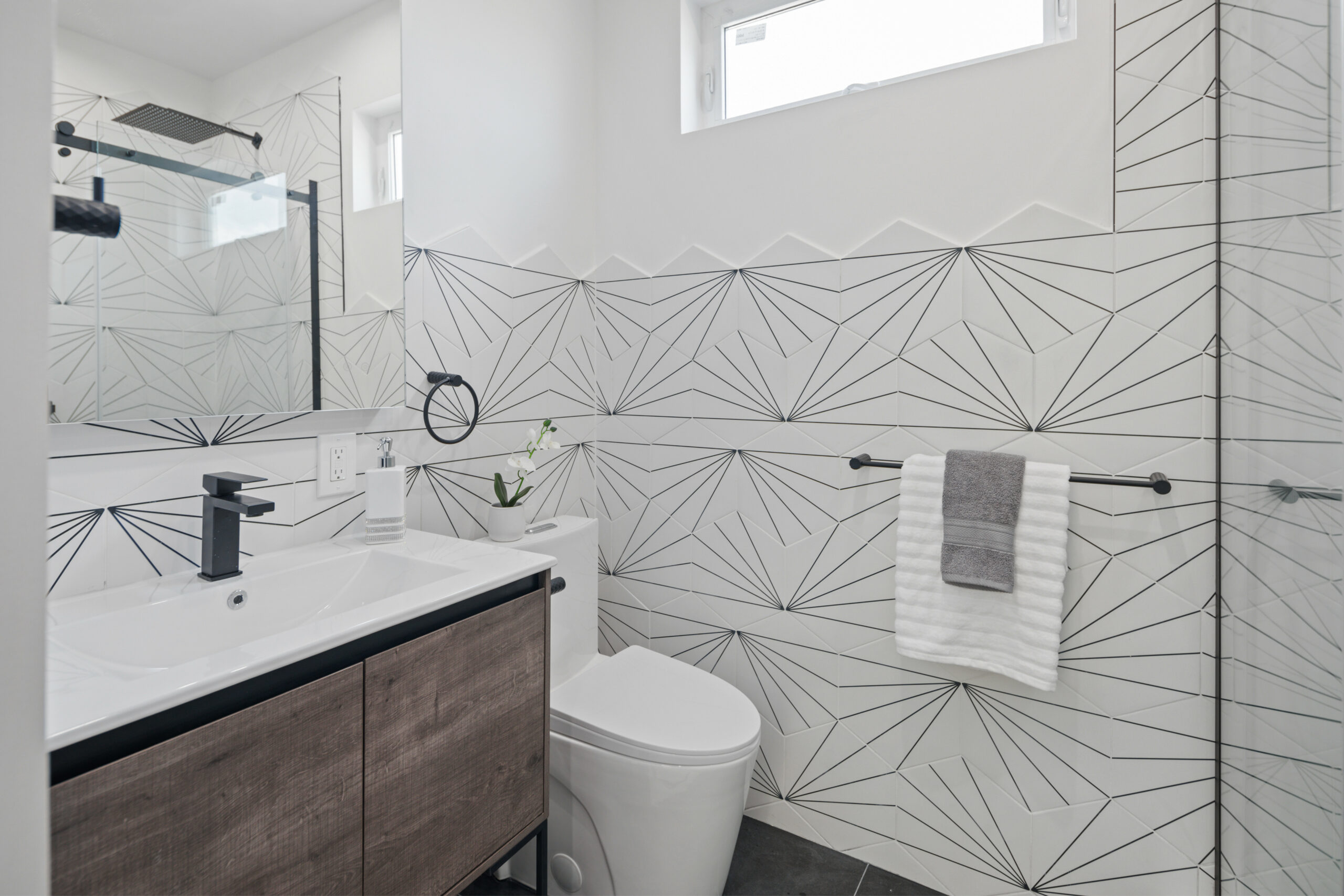 - Storage planning (linen towers, recessed niches, vanity organization)